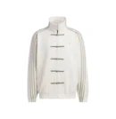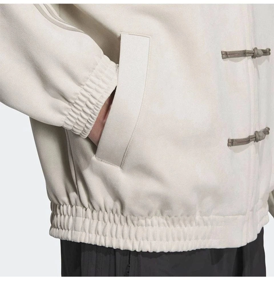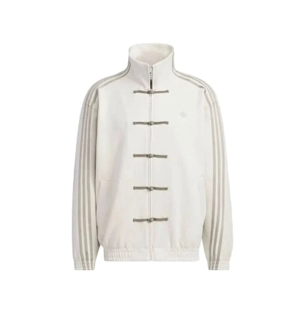 The jacket features a mandarin collar and classic frog-button accents, inspired by traditional Chinese festive clothing. These heritage details are balanced with Adidas’ signature sporty sleeve stripes, giving the jacket a clean, contemporary streetwear feel.