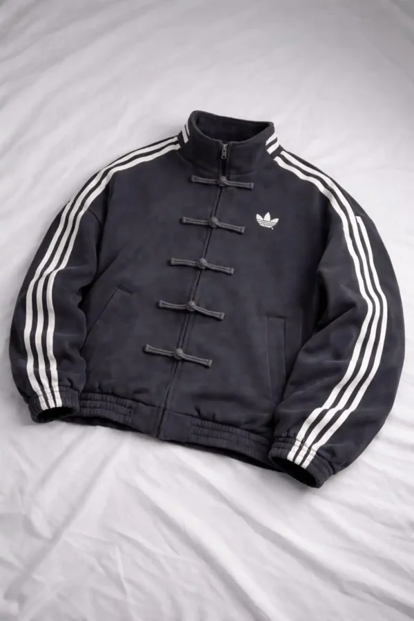 Step into standout fashion with this Adidas-style Chinese Track Jacket — a perfect mix of vintage sportswear and traditional Eastern design. Inspired by the bold aesthetics seen in Adidas Originals collections, this piece is made for those who want their outfit to speak before they do.