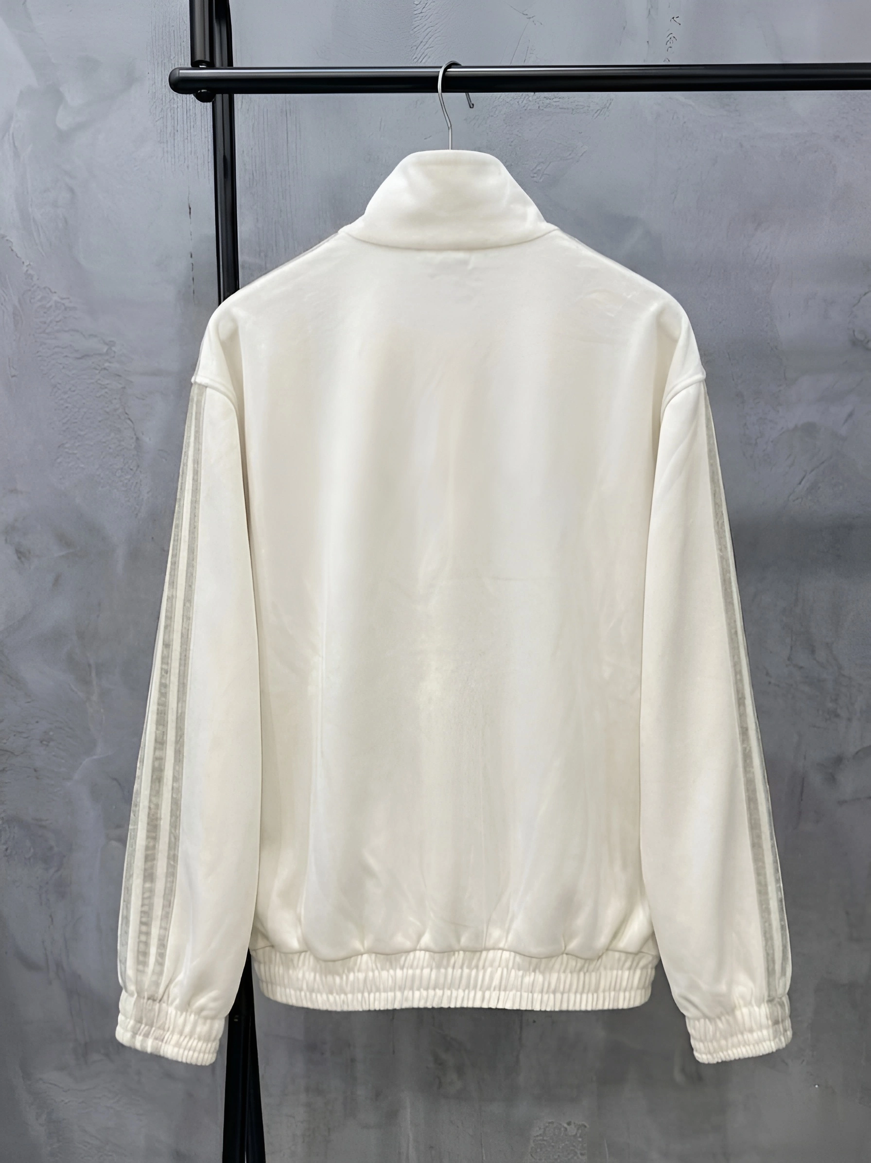 Upgrade your wardrobe with this Adidas White Velvet Chinese Knot Track Jacket, a perfect blend of luxury texture, streetwear aesthetics, and modern design. Crafted with a smooth velvet-like fabric, this jacket delivers a soft, rich feel while maintaining a stylish and structured look.